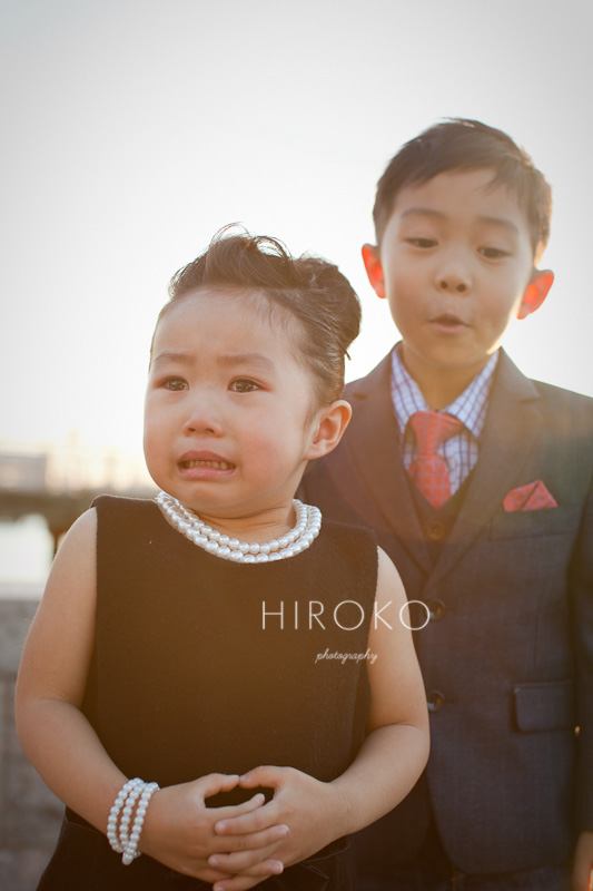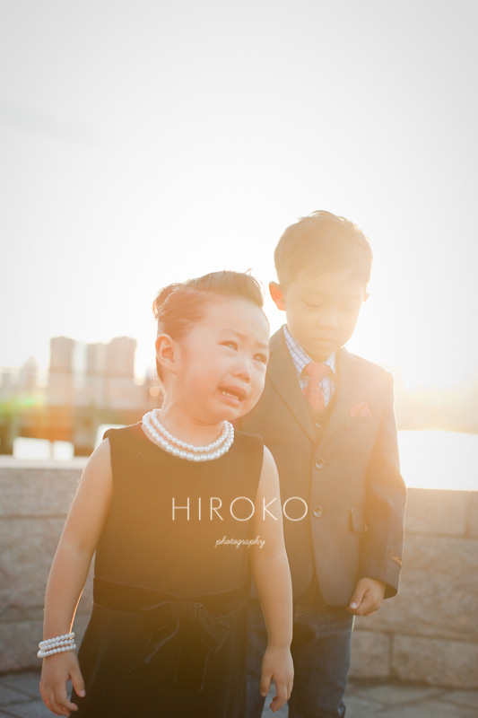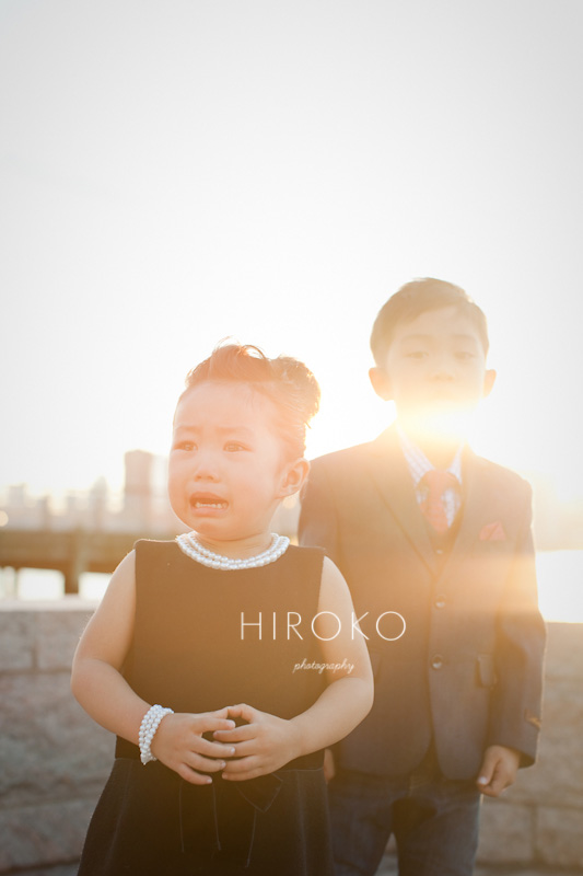 先日、ロング・アイランド・シティーにあるガントリーパークでホリデーカード用の撮影をしました。この時はまだ10月、奇跡的に猛暑日が続いた週でした。「撮影が終わったらトイザラスだからね〜。おもちゃ1個づつ買ってあげるからね〜。言われた通りに動いてね〜」と数日前からこんこんと説明してたので、二人はすんなり着いてきてくれました。