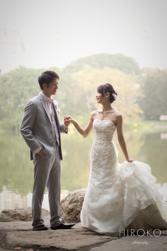 フォトウェディング in ニューヨーク。もう9月も終わりかけ。立秋の熱気がひとだんらくついて、始まったばかりの一日の空気も透きとおっています。