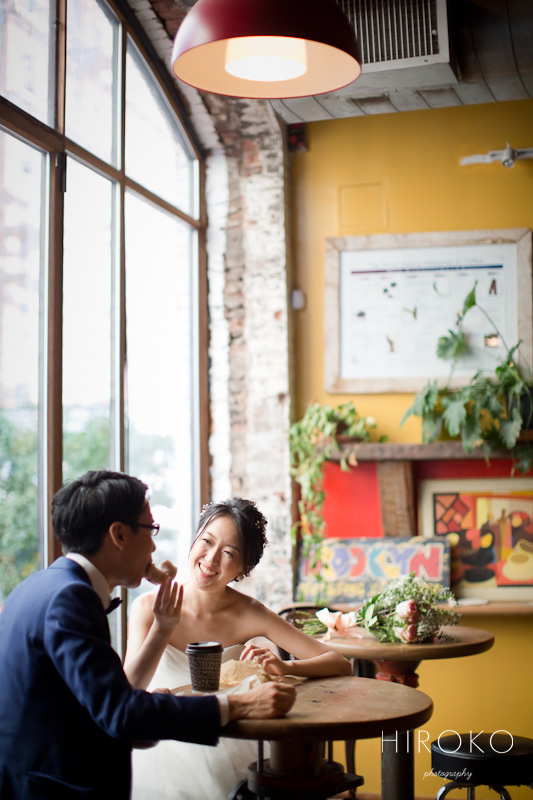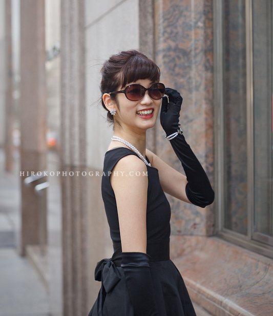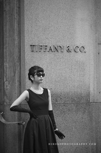 オードリー・ヘプバーンを愛してやまないブライドさまの、「ティファニーで朝食を」撮影♥(詳しい記事は→こちら)こんな番外編ショットも、とてもユニークです。
