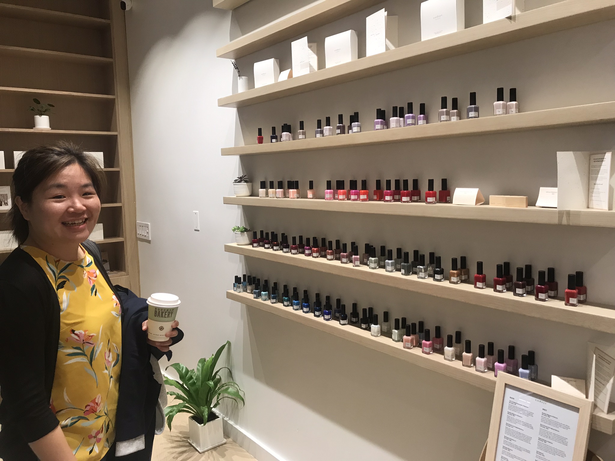 高級デパートモール内の、オーガニックネイルサロン「Sundays」のギフトカードをくれたので、一緒にネイルしてきました。