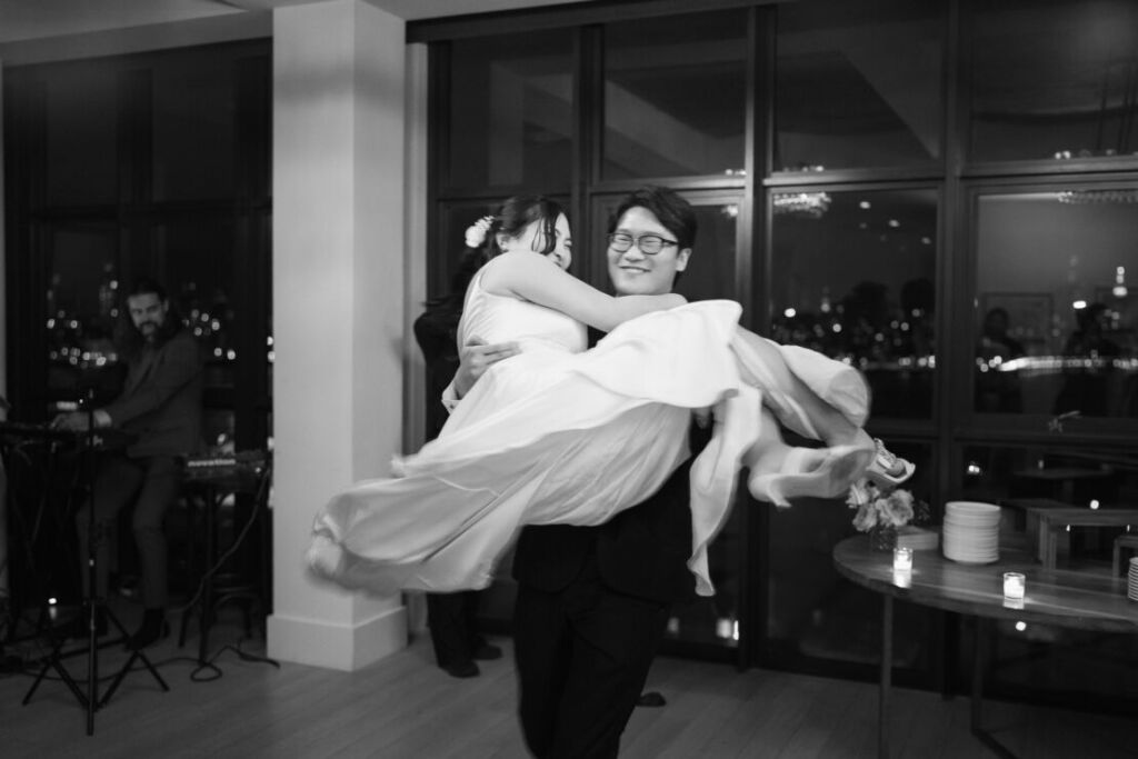 大きな窓から見えるマンハッタンの光のショーに照らされて、お二人の未来が一段と輝いていました。